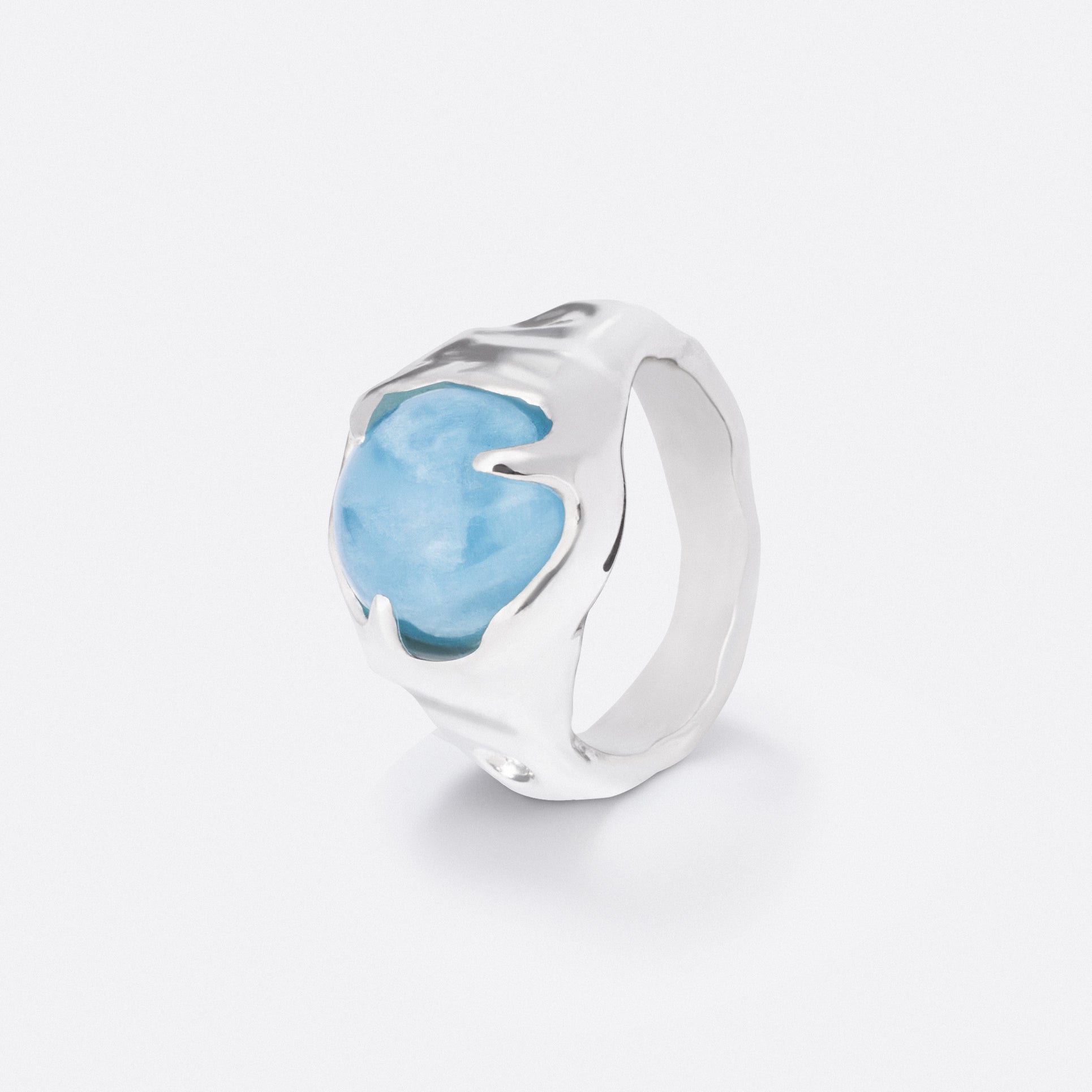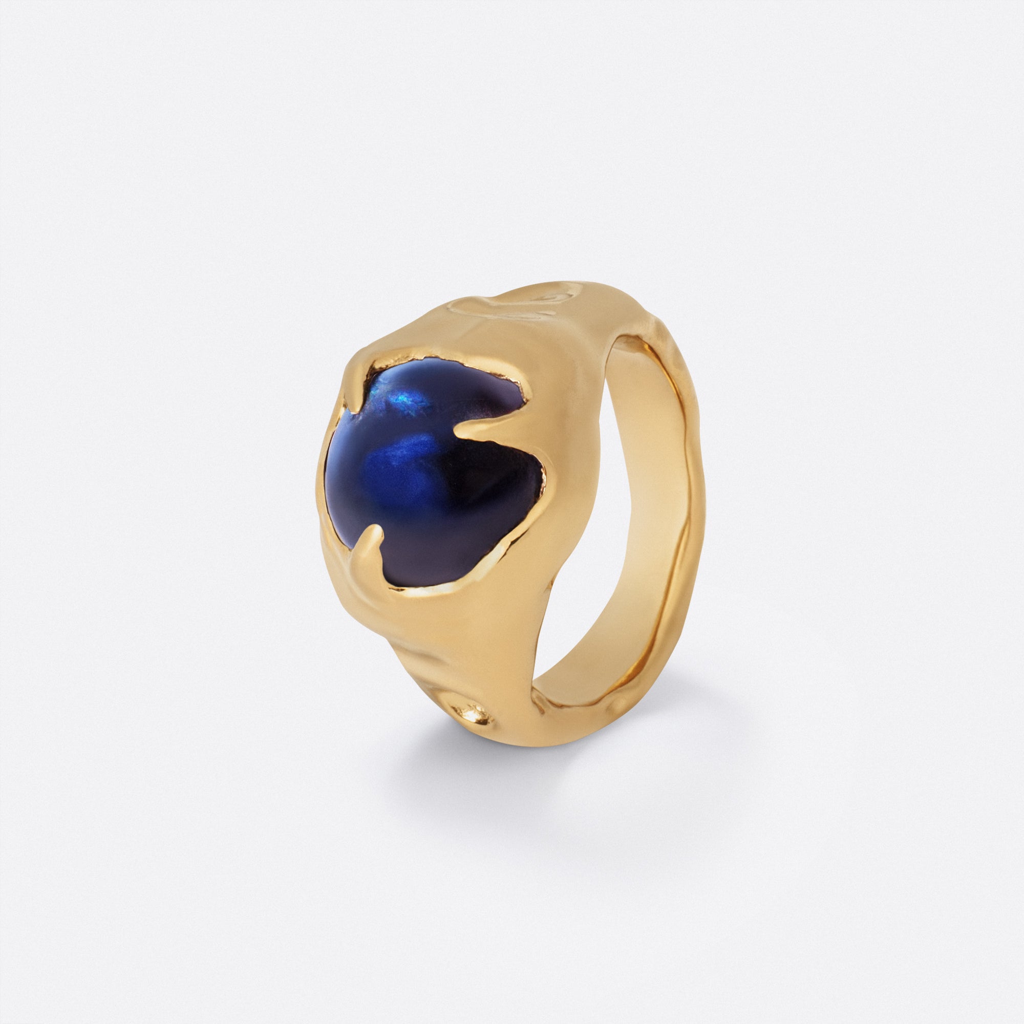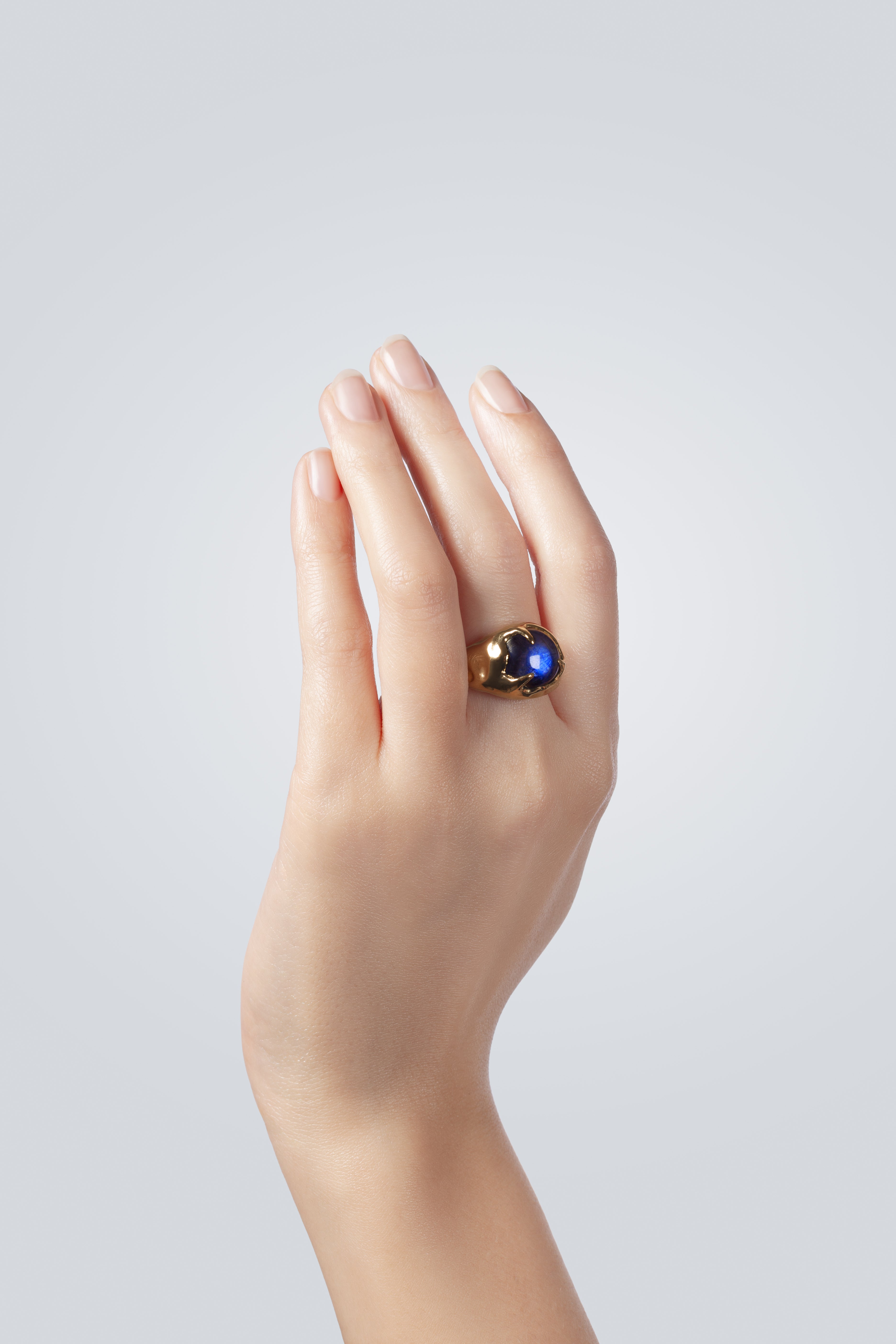 Sculpted in Silver or Gold Vermeil, it envelops a cabochon stone chosen for its exceptional depth.