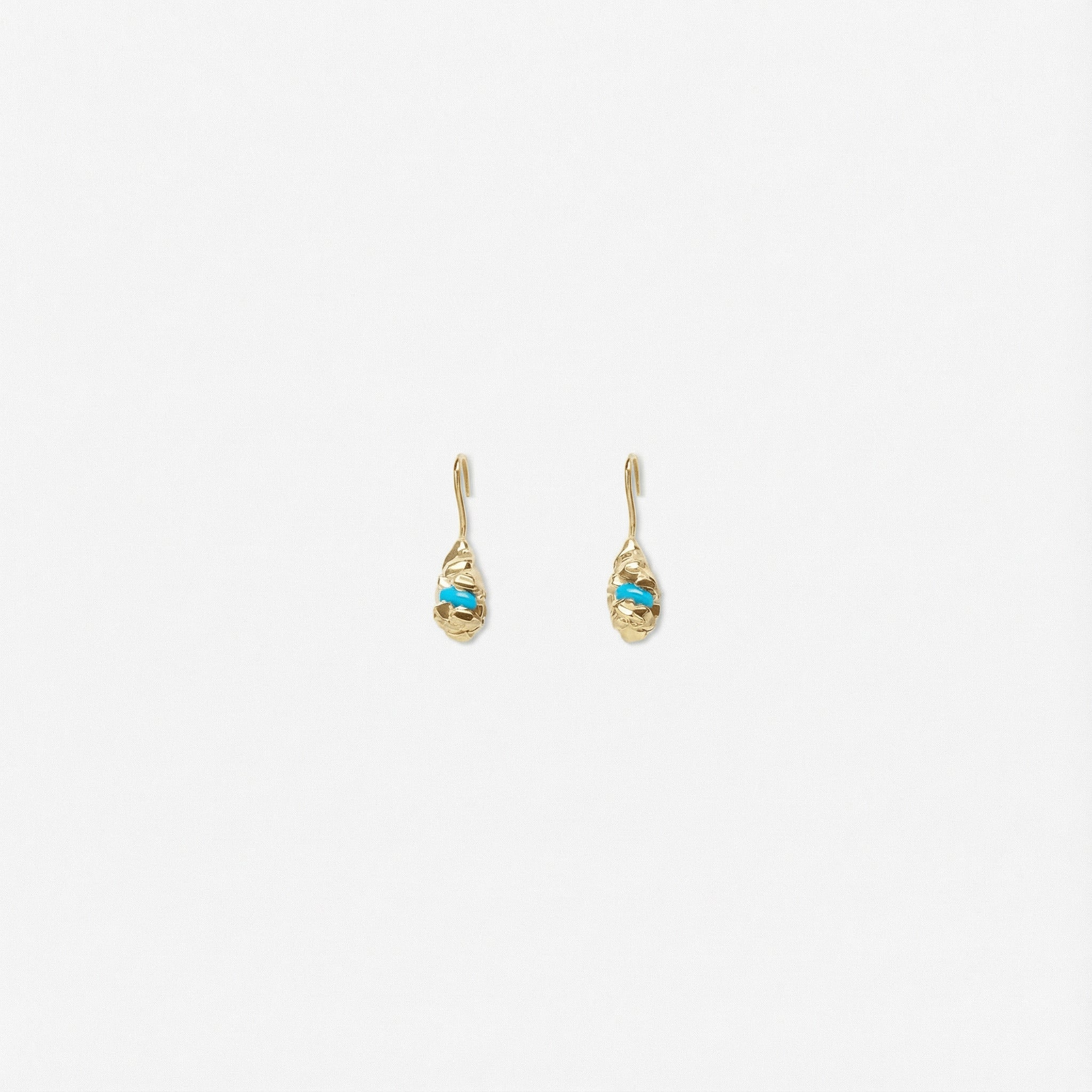 Delicate and organic, ILLIONA earrings seem to blossom like a little nugget of light in the hollow of the ear. Their sculptural silhouette, crafted from metal, envelops a natural stone of your choice: deep and luminous garnet, symbolizing passion and grounding, or vibrant and sunny turquoise, bringing protection and serenity.