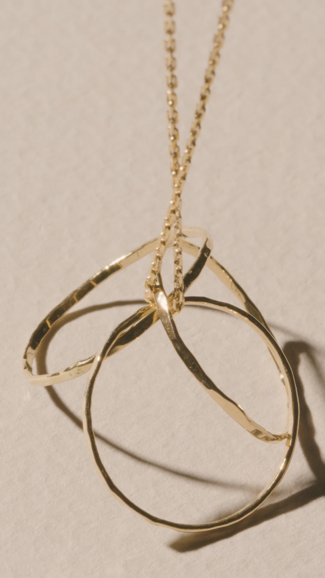 Our must-have Olympe rings are available here as pendants. The Olympe necklace, with its fine, delicate chain, is a set of 3 intertwined rings. Each ring is delicately hand-hammered by our jewelers. An 18-carat gold necklace, Olympe is available in yellow, pink or white gold.