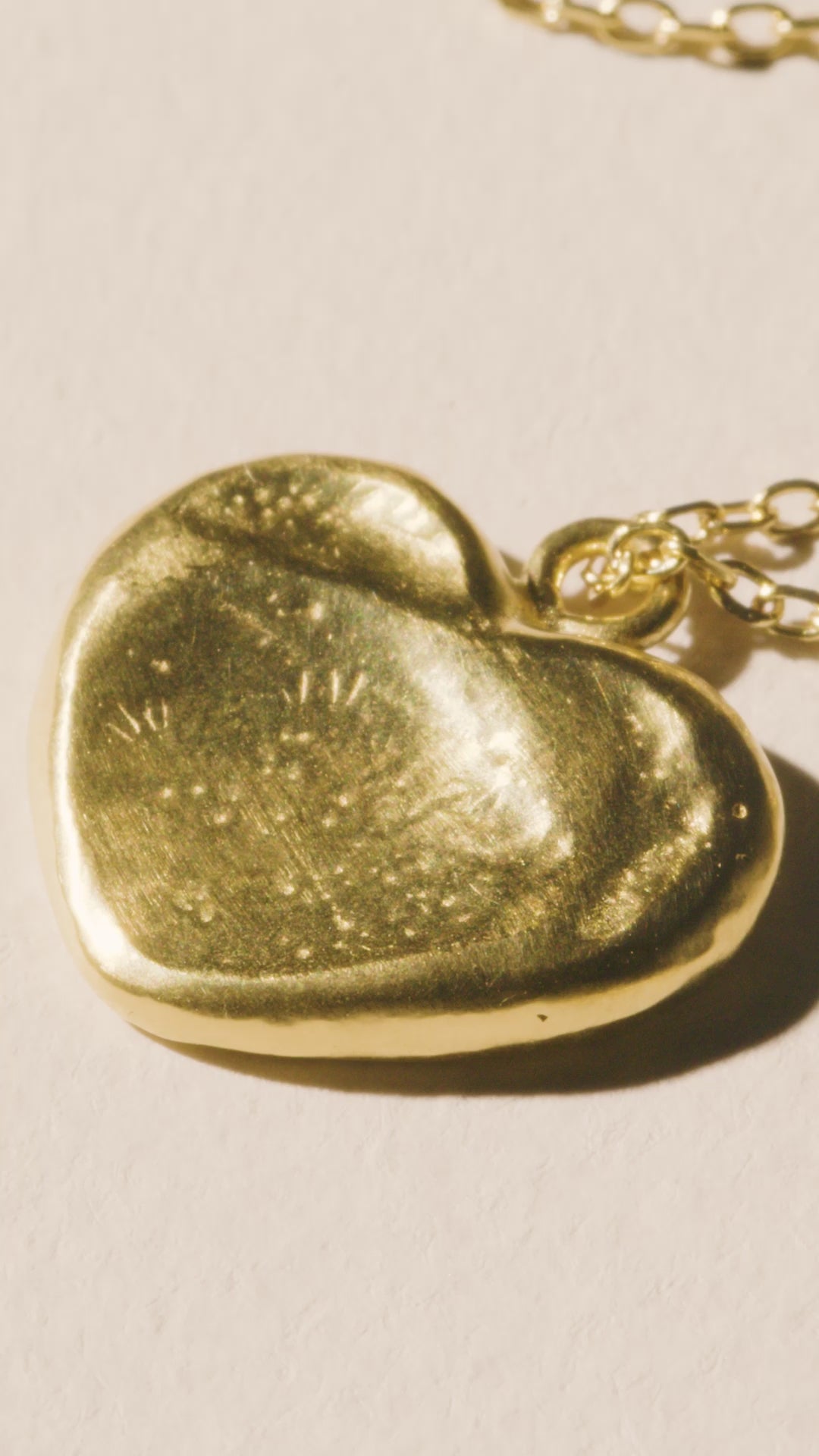 A true declaration of love, the Tila necklace stands out with its rounded, textured heart. With its fine, delicate chain, the necklace is available in Silver Gold Vermeil. And to make it even more unique, engraving on the medallion is available.