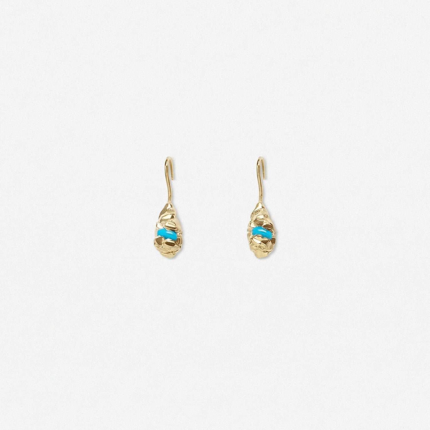 Délicates et organiques, les boucles d’oreilles ILLIONA semblent éclore comme une petite pépite de lumière au creux de l’oreille. Leur silhouette sculpturale, façonnée dans le métal, enveloppe une pierre naturelle au choix, le grenat, profond et lumineux, symbole de passion et d’ancrage, ou la turquoise, vibrante et solaire, porteuse de protection et de sérénité.